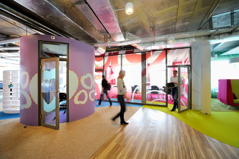 位于瑞士的聯(lián)合利華辦公室,就像天朝的兒童樂(lè)園,完全是大小孩理想中的夢(mèng)想空間。色彩的明麗跳躍與碰撞讓人全然忘乎這是個(gè)本該嚴(yán)肅莊重的辦公環(huán)境。