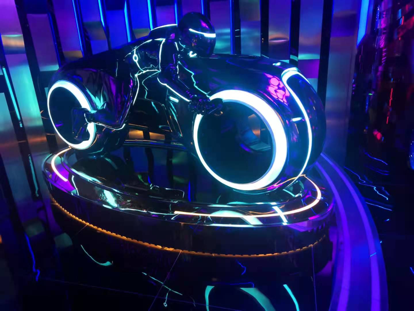 2、摩托:男士最喜歡的道具,炫酷科技,燈帶線條奪目,有的還帶VR游戲,帶上眼鏡,騎上摩托,就可以感覺體驗一番。