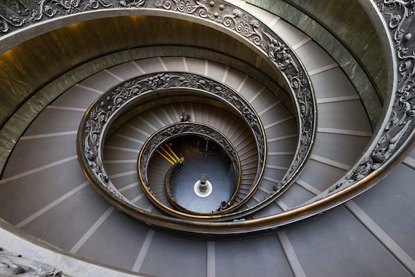 旋轉(zhuǎn)的幾何美感,好像有著特殊的吸引力想要把人吸進(jìn)去。攝影師們最?lèi)?ài)拍這種樓梯了吧。